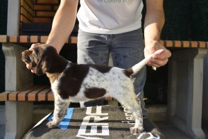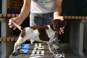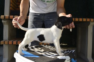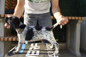 Duna es una perra de color negro-blanco, la cabeza la tiene completamente negra y los ojos oscuros. Ella es una perra joven, inteligente y enérgica en el campo en turnos de trabajo o en largas jornadas de caza. Una perra con muestra, nariz, cobro y mucho estilo. Es una perra con gran andadura y porte de cabeza correcto que se sabe encuadrar bien con el viento. Le gusta mucho el agua y ella realiza un buen trabajo de búsqueda tranquila e insistente. También realiza el cobro en agua sin ninguna dificultad. Una perra fiel. Ella es amable y cariñosa con otros perros y con la gente y tiene muy buen carácter. Carácter amable y fuerte en el sentido de que ningún ruido ni gesto ni grito ni actitud le hace venirse abajo.